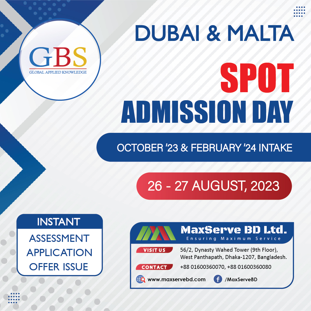 SPOT ADMISSION for GBS (Malta and Dubai Campus)